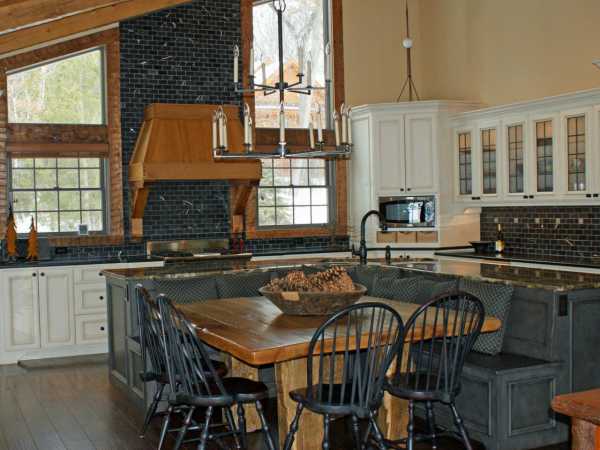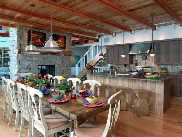 Этот вариант наиболее часто используется при создании классических интерьеров кухонных помещений и кухонь в стиле кантри. Плитка под камень почти неотличима от натуральных пород – гранита, сланца или мрамора. Очень выразительны образцы, имитирующие старый камень. В таких интерьерах великолепно смотрится деревянная мебель из натуральных пород, необычный яркий текстиль с фактурным рисунком и кованые аксессуары.