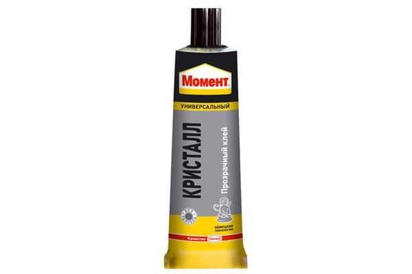 - Клей «Момент-кристалл». Тоже универсальный клей, может прикрепить панель из пластика практически к любому основанию. Преимущество состава в том, что он прозрачный.