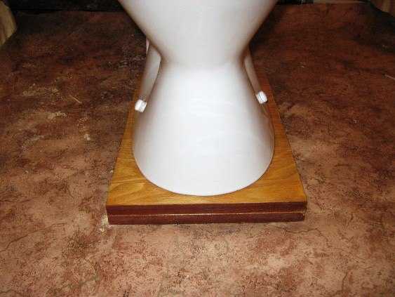 Для этих целей используют деревянную доску для обустройства подставки. Ее необходимо изготовить точно так же, как и прокладку из резины или линолеума, после этого «посадить» деревянное изделие на герметик, нанести на него слой герметика и уже сверху получившейся конструкции положить прокладку. Если все сделать точно по размерам ножки унитаза, то получится надежная конструкция.