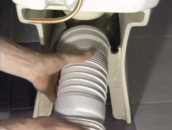 Теперь необходимо установить унитаз на нужное место и подсоединить гофрированную трубу к канализационной системе. Как и в прошлом случае, для герметизации площади контакта гофрированной трубы необходимо использовать силиконовый состав. Затем требуется приложить силу и прижать изделие к полу максимально плотно, после чего оставить его в покое на 14 часов.