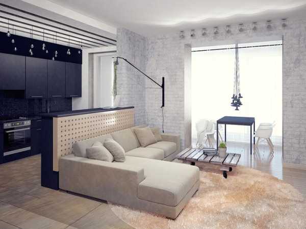 Организация пространства – самый важный момент, когда требуется обустроить маленькую квартиру-студию. Необходимо визуально отделить одну зону от другой, например, кухню от гостиной или спальню от гостиной. Разделяя пространство на зоны, необходимо придерживаться единого стиля по всей квартире.