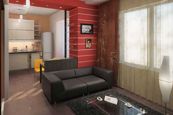 Не нужно разделять площадь на две равные зоны – лучше сделать три зоны разной величины (например, гостиную, спальню и столовую) или же отдать 2/3 пространства под гостиную и лишь 1/3 – под спальню.