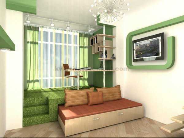 Если в семье есть ребенок, для него спальным местом может служить кровать, которая легко трансформируется в шкаф. Возможны различные варианты мебели-трансформеров. Если необходимо рабочее место, его можно организовать возле окна, используя подоконник вместо стола.