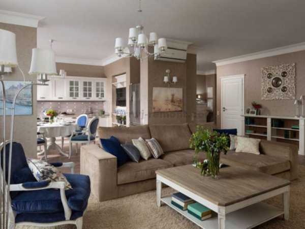- Преобладающий цвет – белый, молочный, песочный, светло-бежевый и тому подобные оттенки. Не стоит бояться белого за «стерильность»: несколько ярких акцентов в интерьере и квартира уже становится уютной и гармоничной.