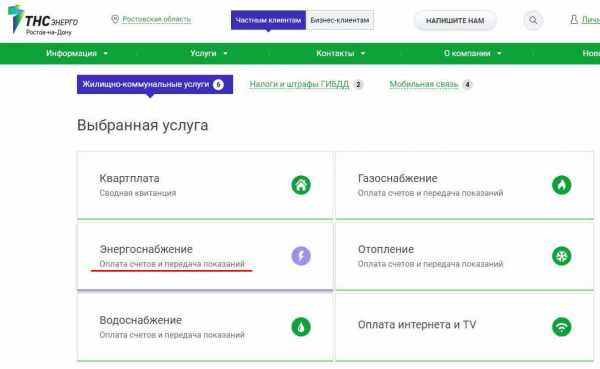 - справа выбрать раздел «Прием показаний и оплата электроэнергии»;