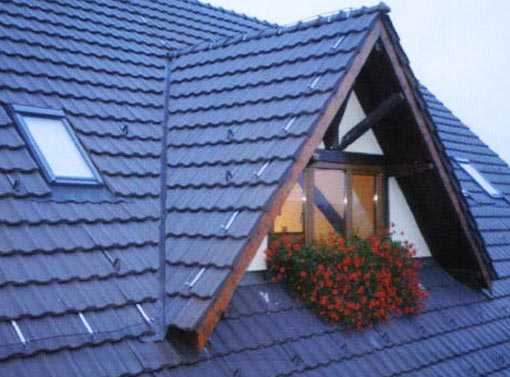 Обрешетка под снегозадержатель устанавливается сплошная. При этом расстояние между опорами составляет 1 м. В роли опор выступают кронштейны. Расстояние от последней опоры до конца снегозадержателя не должна превышать 50 см. Монтаж приспособления организуется подобно установке кровельного ограждения (подробнее: «Как установить снегозадержатели на металлочерепицу»). Снегозадержатель ставят на расстоянии 35 см от карниза. При ширине ската более 8 м предусмотрена установка дополнительных снегозадержателей. При этом конструкцию обязательно устанавливают над окнами мансарды (прочитайте также: «Как правильно покрыть крышу металлочерепицей»).