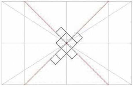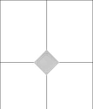 - Диагонали квадрата скрестились в точке крепления люстры. От этой точки и следует начать работу, распределяя отправные четыре плиты так, чтоб их края, шли параллельно диагональным линиям прямоугольника, а верхушки сближались в месте прикрепления осветительного прибора.
