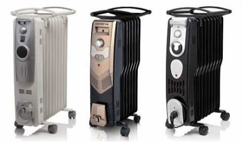С виду масляные обогреватели очень похожи на обычные секционные радиаторы центрального отопления. В качестве теплоносителя в данных бытовых приборах используется специальное минеральное масло, нагревающееся до состояния кипения. Модели масляных обогревателей выпускаются с разным количеством секций, что позволяет выбрать прибор нужной мощности.
