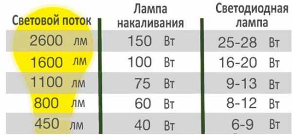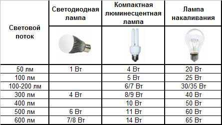 Изучите таблицу соответствия различных типов ламп с их мощностями и выдаваемыми люменами, и сверяйтесь с заявленными данными от производителей.