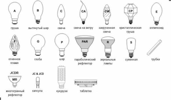 Кроме этого форма источника света может быть самой разнообразной: от стандартного варианта исполнения до грушевидных или спиральных форм.