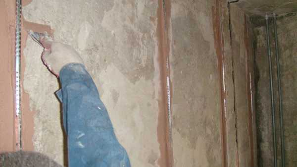 - Работа начинается с оценки состояния стен. При наличии дефектов, трещин, выпуклостей поверхность придется шпаклевать.