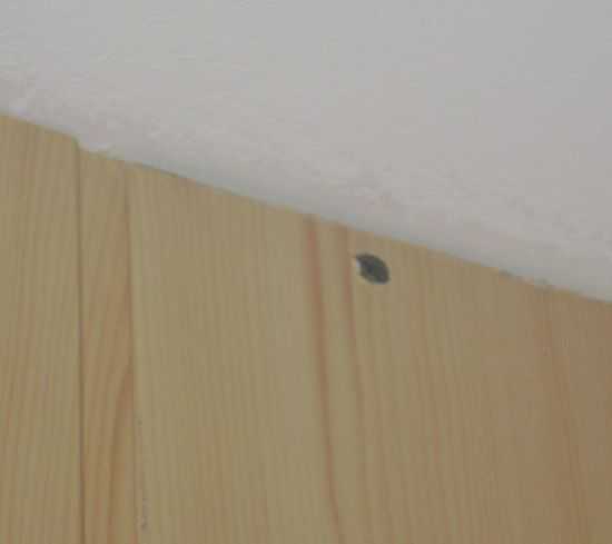 - Клей не наносят на края материала. Если проклеивать края, клея может оказаться в избытке, он выступит наружу и может подпортить внешний вид отделки. Панель с нанесенным клеем прикладывается к стене и фиксируется в неподвижном положении не менее, чем на 5 минут. Проблем с технологией проклейки обычно не бывает. Первая панель очень важна, она должна быть хорошо зафиксирована. Она выставляется по уровню и закрепляется внизу и вверху дюбелями.