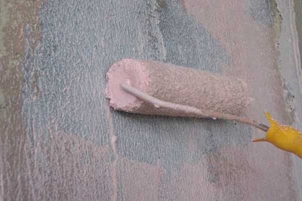 - Если бетонная поверхность гладкая, то ее необходимо подготовить с помощью грунтовки с добавлением кварцевых вкраплений, которые придадут стене требуемую для надежного удержания штукатурки шероховатость. В цементный раствор для стены добавляется порошок гипса, который существенно усиливает адгезию смеси со стеной.