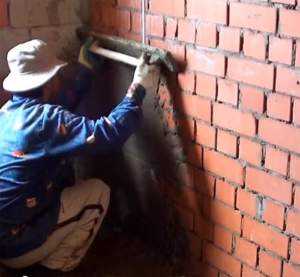 - Далее, швы между кирпичей нужно немного углубить — на 5 ÷ 7 мм, чтобы штукатурка вошла в них и от этого получила наилучшее сцепление со стеной.