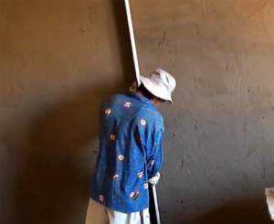 - С деревянной поверхности счистить старую штукатурку совсем просто. Стену обстукивают молотком, и штукатурка сама слетает на пол, поэтому рекомендовано под стену заблаговременно постелить полиэтиленовую пленку. Тогда после снятия штукатурки пленку вместе с отколотым строительным мусором можно сразу же вынести из комнаты, не растягивая уборки на долгое время и не развозя грязи на весь дом.