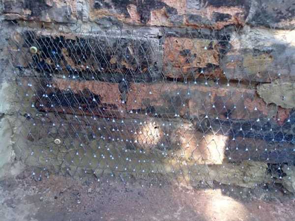 Следующим этапом устанавливается армирующая сетка, она закрепляется дюбелями. Теперь можно приступать к штукатурке.