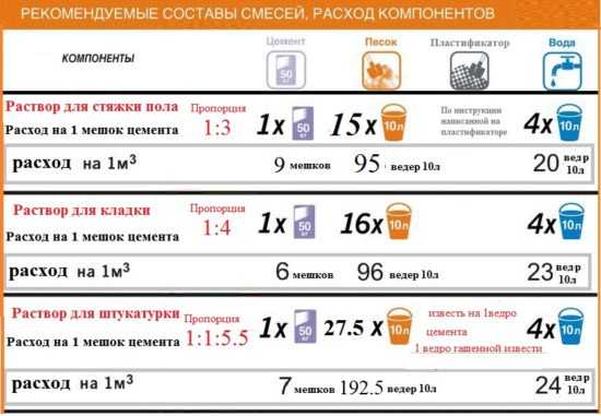 Таблица 2. Рекомендуемые пропорции для некоторых штукатурных составов