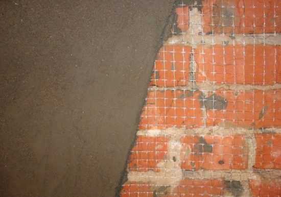- На кирпичные стены накладывается слой штукатурки, который не должен превышать 30 мм. При этом нужно учитывать то обстоятельство, что если толщина покрытия будет составлять более 20 мм, то под штукатурку на стену обязательно крепится сетка-рабица для армирования и удержания смеси на поверхности.
