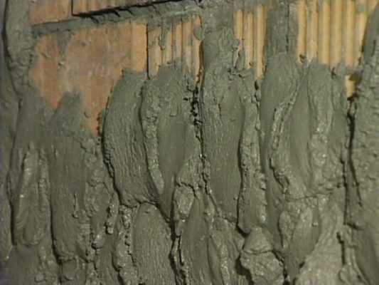 - Стены, выведенные из кирпича, обычно штукатурят смесями, изготовленными на основе цемента, иногда — с небольшим добавлением извести для придания дополнительной пластичности. Известь добавляется и в том случае, если работы проводятся в помещении с повышенной влажностью или же снаружи строения.