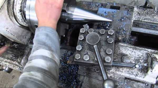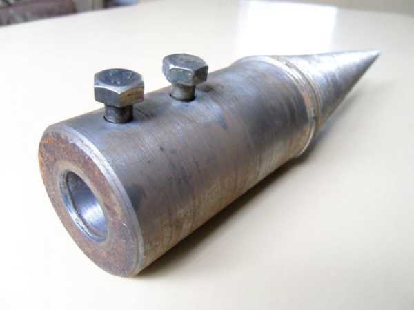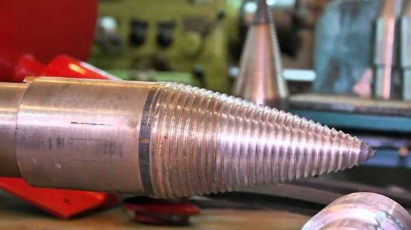 1. В качестве основы для этого колуна можно взять прочный конус из стали с резьбой. Этот конус можно выточить самостоятельно при помощи токарного станка, а после этого на нем следует сделать резьбу.
