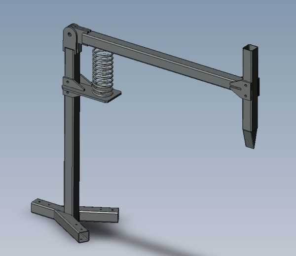 В этой конструкции основное усилие — удержать колун после того как полено раскололось — принимает на себя пружина. Соответственно, главное — подобрать пружину и упор так, чтобы прилагались минимальные усилия, но они были достаточными для того чтобы расколоть даже сложные, суковатые чурбаки. Упор под пружину можно сделать подвижным. Тогда можно подстраивать параметры под конкретные условия. Реально же «перенастройка» требуется под конкретного человека. Если работать с орудием будет один человек, то можно делать все стационарно, подобрав высоту опытным путем.
