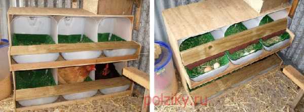 Гнезда для несушек из дерева и пластиковых контейнеров