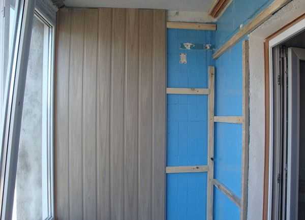 Данный способ применяется под отделку панелями ПВХ сухих помещений. Сначала изготавливаются направляющие в виде бруса, которые крепятся к стенам, полу и потолку. Внутри получившегося каркаса устанавливают рейки, делают это перпендикулярно расположению панелей.