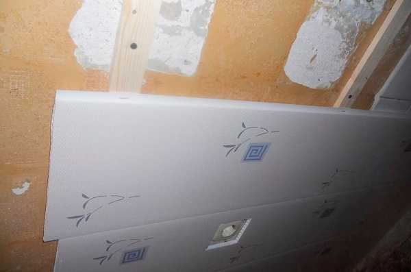 Лучше всего выбирать пластиковый материал. Закрепляют рейки через каждые 30-40 см для стен и 40-50 для потолка параллельно полу (если панели будут расположены вертикально).