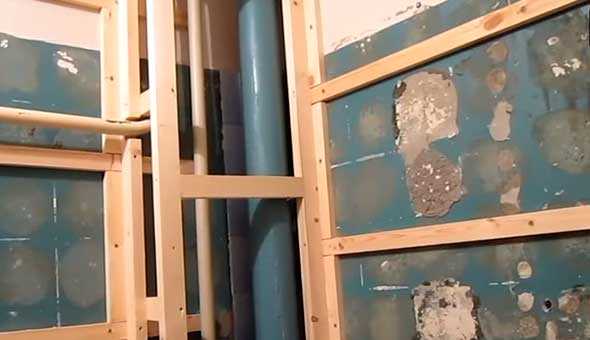 При каркасном способе крепления будет достаточно удалить со стен старое покрытие и выровнять их в тех местах, где будут установлены рейки для обрешетки.