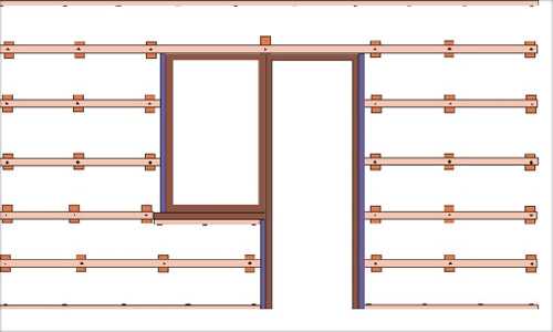 - Особое внимание уделите дверным и оконным проемам. Следите за тем, чтобы обрешеточные балки были расположены равномерно.