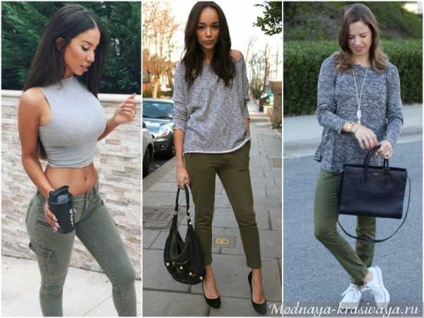 Темный зеленый и серый – мягкое, стильное, выразительное сочетание, в котором зленный выглядит драгоценным и более привлекательным оттенком. В такую пару всегда можно добавить джинсовый и молочный.