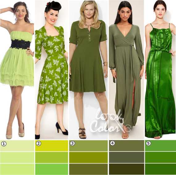 Сочетание зеленых оттенков очень часто присутствует в одежде в виде сочетания темных более светлых тонов. Это мягкие, волшебные гаммы, черпающие вдохновение в лесной тишине, тропической буйстве зелени.