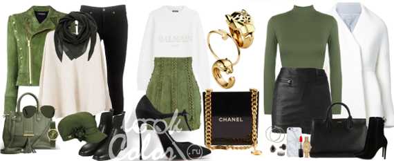 Если есть желание в комплекте подчеркнуть именно красный цвет, стоит выбрать тёплые оттенки зелёного. Сочетания будут выглядеть драматично и выразительно. Для этих целей подойдут фисташковый, жёлто-зелёный, болотный, оливковый, хаки.