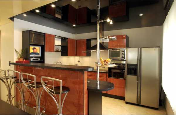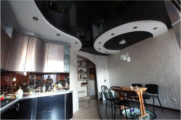 С дизайнерской точки зрения такие потолки — едва ли не самое выгодное решение. Они позволяют воплотить в жизнь самые сложные и нетривиальные конструкции, приблизив, тем самым, вашу кухню к высоким стандартам оформительского искусства.