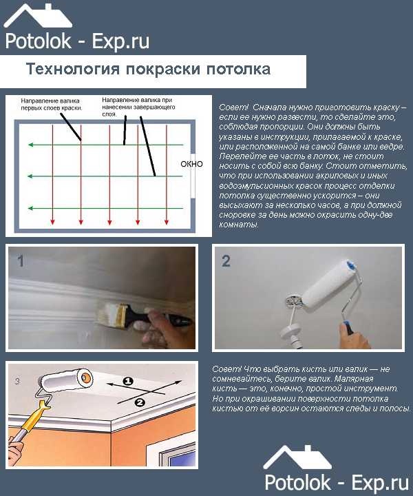 Для потолка лучше приобретать краску моющего типа. Алгоритм подготовки к окрашиванию: