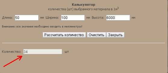 - Получите количество материала в 1м³ (данные выводятся в штуках).