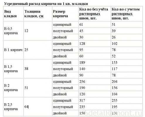 Существует множество таблиц и подготовленных материалов, где можно ознакомиться с данными сот ношения размера кирпича, вида работы и количества используемого раствора. Исходя из таких цифр можно получить необходимый результат.