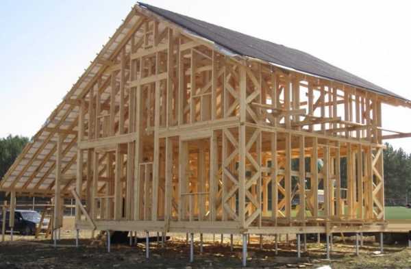 каркасный дом на сваях – фото этапного строительстваТакой дом, при большом желании и наличии нужных навыков, можно построить даже самостоятельно. Разумеется, все эти неоспоримые плюсы вдохновляют многих энтузиастов склоняться именно к этому варианту частного дома.
