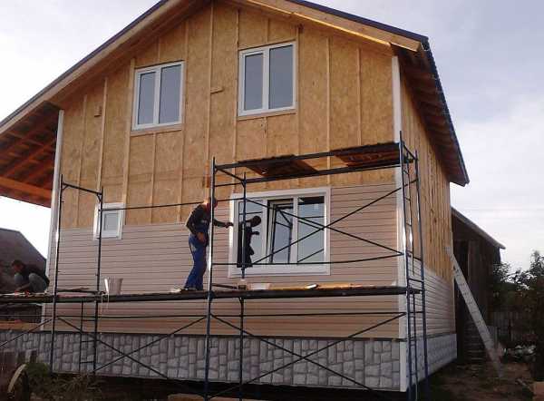 Для наружной обшивки стен дома для круглогодичной эксплуатации применяется обрезная доска, ОСП, асбестоцементные плиты, или фанера.