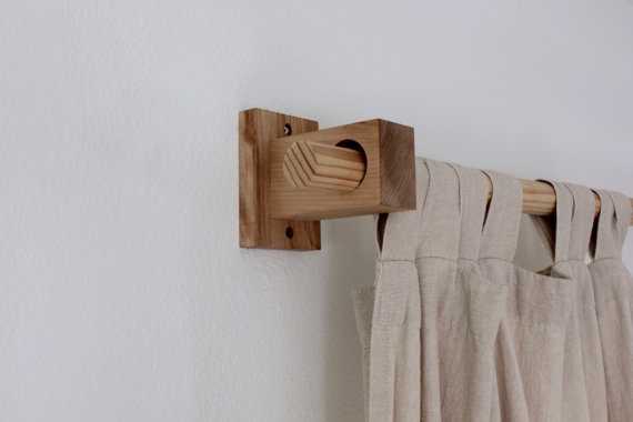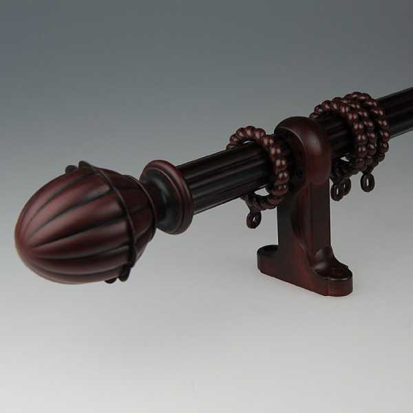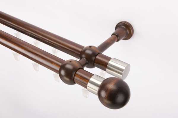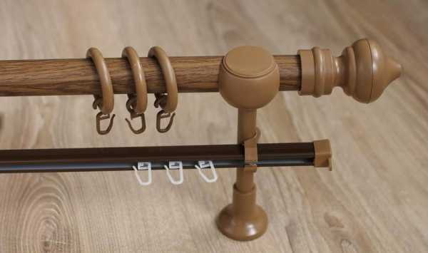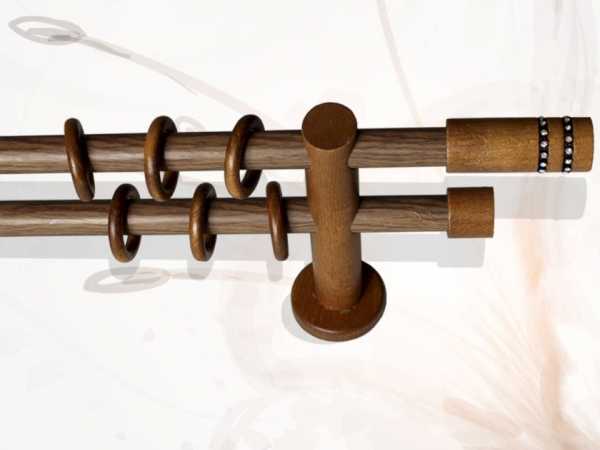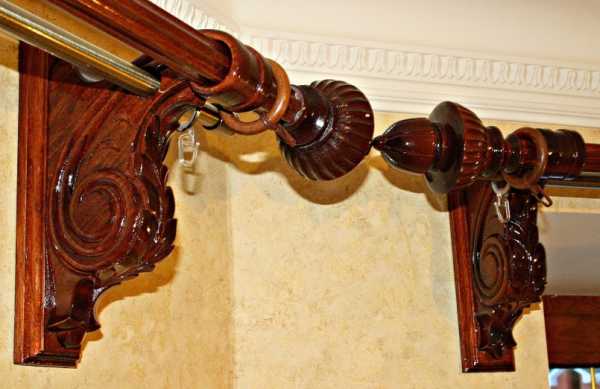 Они появились уже давно, однако не теряют своей популярности. Часто деревянные карнизы для штор оснащаются металлическим стержнем, что увеличивает их вес.