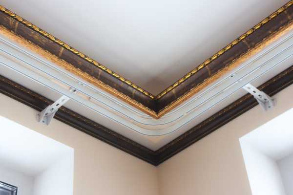 - Ещё одним методом крепления считается монтаж карниза на специальных закладных, прячущихся за потолком.