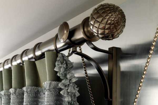 Совет: если вы хотите вешать плотные гардины, приобретайте кованые карнизы и наконечники.