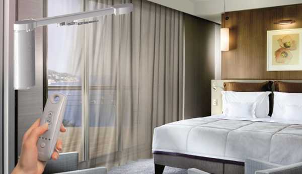 Эти карнизы считаются самыми современными и легко управляемыми. Вам достаточно нажать на пультик и все ткани на карнизе распахнуться.