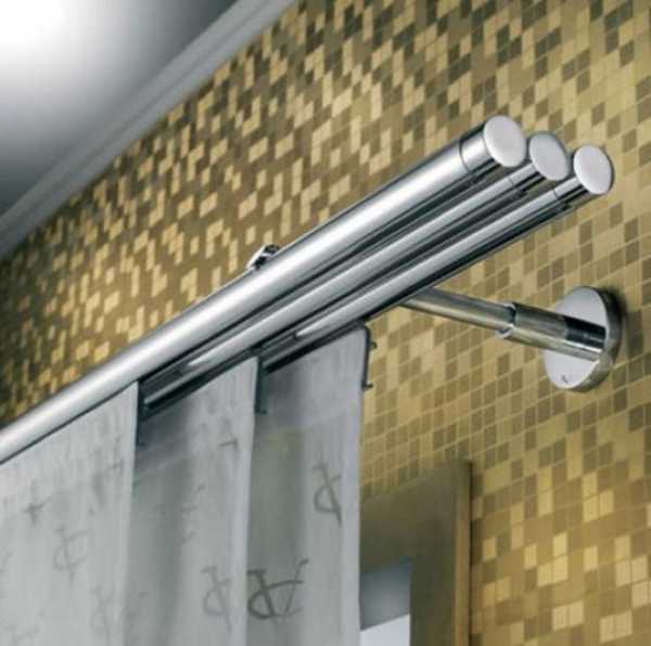 Это штанга, на которую впоследствии вешают шторы, тюль или занавески. Наиболее распространённый вид настенных карнизов для штор — двойная труба, однако бывают также модели с 3−4 трубами. По стилю и размеру круглые настенные карнизы для штор бывают самыми разными. Так, к примеру, классический вариант придаёт окну изюминку и легко сочетается с любыми шторами.