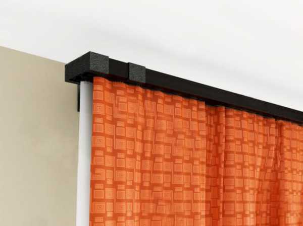 Эти держатели штор крепят на потолок или к стене, а потому они незаметны. Если есть желание скрыть пластик, стоит купить ламбрекен либо декоративную планку. В таком случае необходимо, чтобы карниз сочетался по гамме с оформлением комнаты.