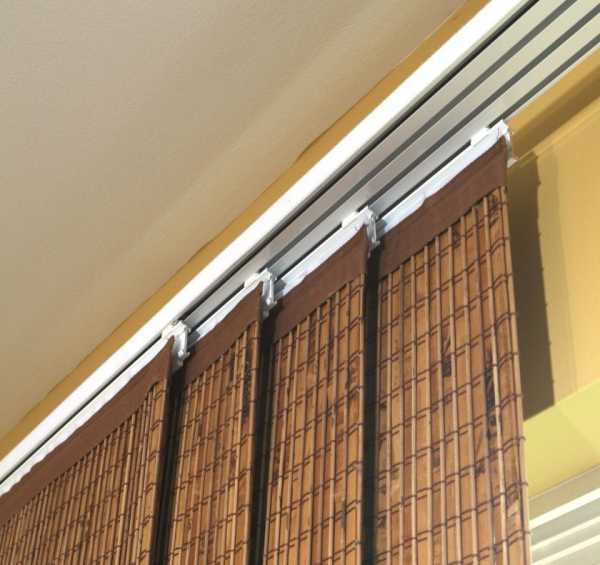 Кроме этого, к профильным карнизам относят держатели для японских и римских штор. Это изделие состоит из специальных дорожек, а также системы управления гардинами (автоматическая либо ручная в виде шнура и трости). Материал прикрепляют благодаря липкой ленте, облегчающей его снятие.