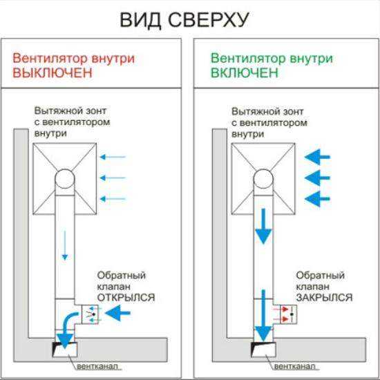 Даже при отключенном приборе вытяжная вентиляция на кухне осуществляется с применением обратного клапана