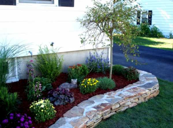 У подобной клумбы есть несколько плюсов. Во-первых, она достаточно долговечна. Камни не придётся подкрашивать, защищать от гниения. Во-вторых, в создании она достаточно проста. В-третьих, подобная клумба идеально впишется в сад в восточном и японском стиле. Нужно просто засыпать грунт и высадить любимые цветы, а сверху разложить в желаемом порядке булыжники, гальку или другие камни. Сделать это можно кругами, волнами или в несколько ярусов. В любом случае, результат будет потрясающим.
