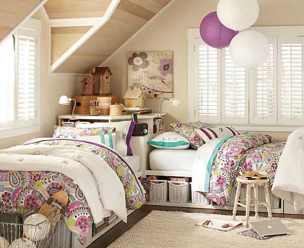 Также на кроватях можно сделать шторки, давая девочкам возможность отгородиться при желании и побыть наедине с собой.