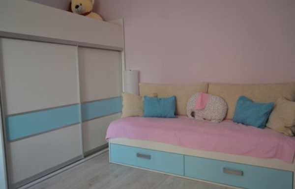 Девочкам уже с самого юного возраста важно наличие большого шкафа, в который можно сложить все ее платья и наряды. Если детская комната не обладает необходимыми размерами для размещения вместительного шкафа, то можно установить небольшой шкаф, а кровать выбрать модульную, чтобы поместить часть редко используемой и сезонной одежды в нее.